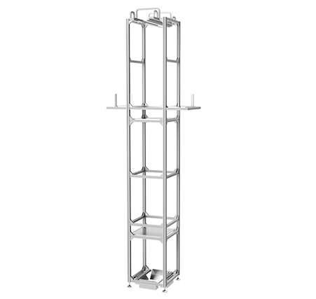塔式升降机顺利获得升降机内部的链条实现天车投入轨道或降下维修,采用封闭设计,完成天车轨道与地面工装小车的连接。